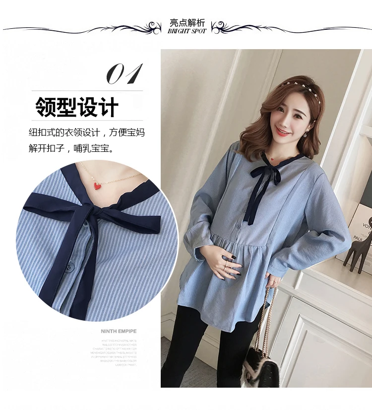 | Large Size Loose Striped Maternity Blouse 2018 Spring Autumn New Long Sleeve Maternity Tops Clothes for Pregnant Women QL829 |