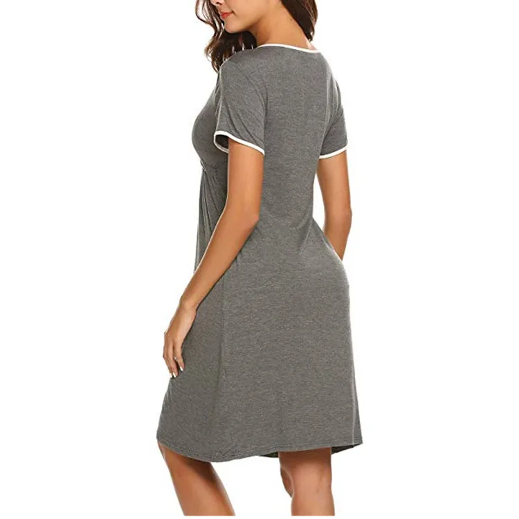| 2020 breastfeeding dress Fashion summer Pregnant women solid color stitching multi-functional mother short-sleeved dress |
