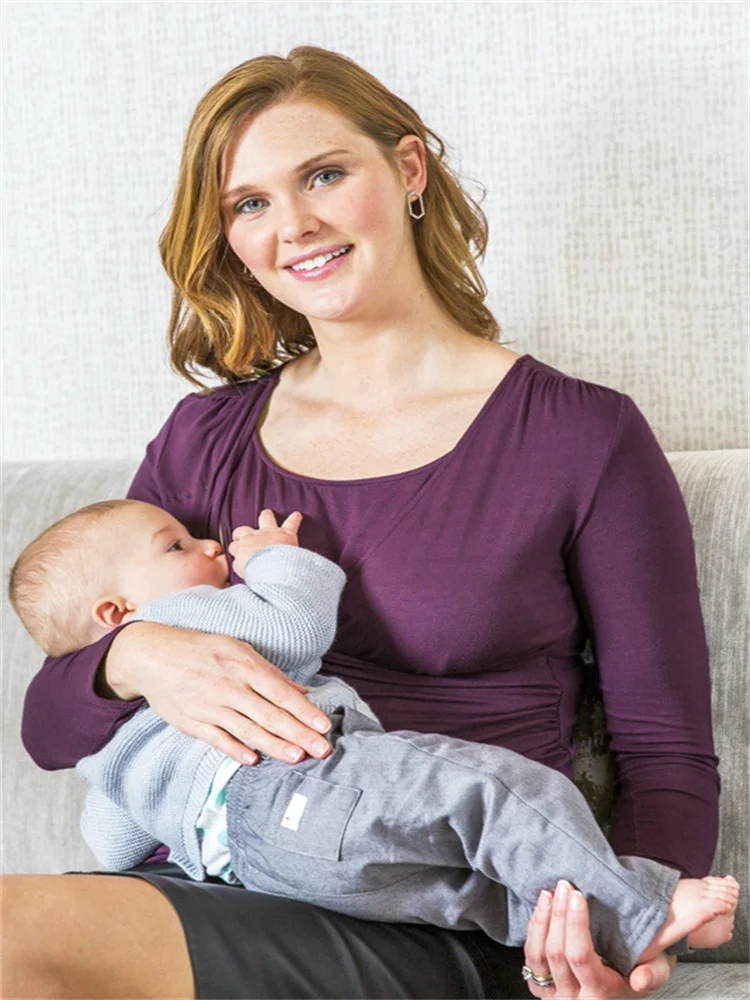 | New Round collar, long sleeves, slim maternity wear, T-shirt, lactation jacket nursing dresses breastfeeding jacket for feeding |