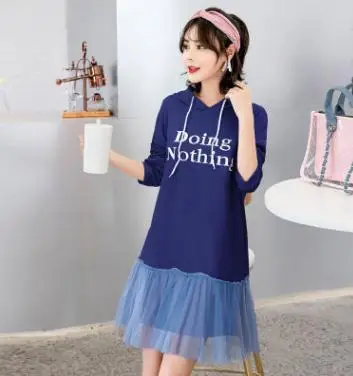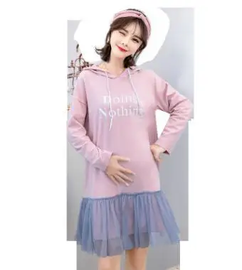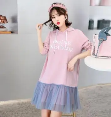 | Large Size Loose Letter Printed Hooded Mesh Maternity Dress 2019 Autumn New Pregnancy Clothes Dress for Pregnant Women QL8821 |