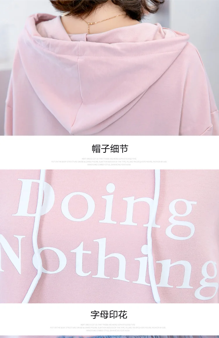 Large Size Loose Letter Printed Hooded Mesh Maternity Dress 2019 Autumn New Pregnancy Clothes Dress for Pregnant Women QL8821