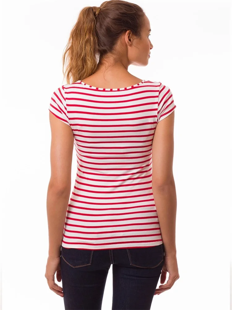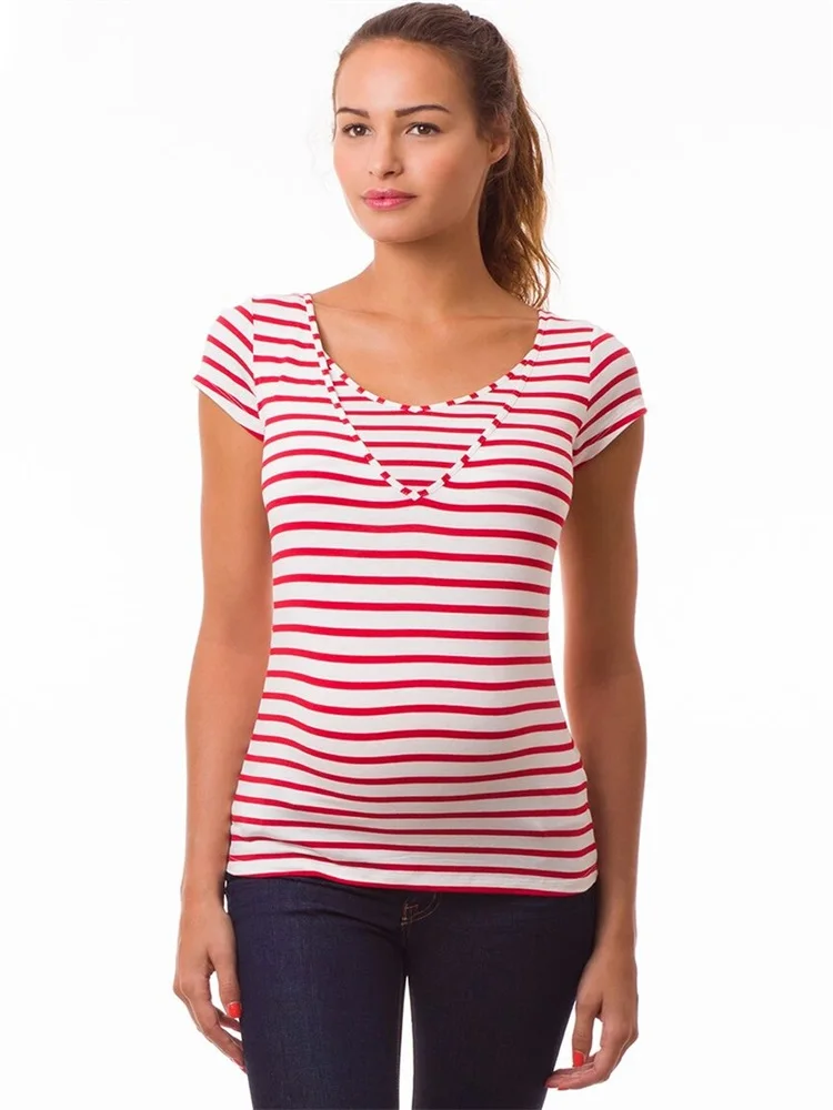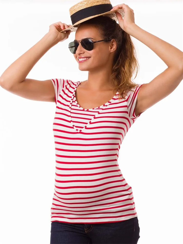 New Moon suit striped V-collar slim short-sleeved breastfeeding shirt T-shirt breast feeding dress nursing dresses breastfeeding