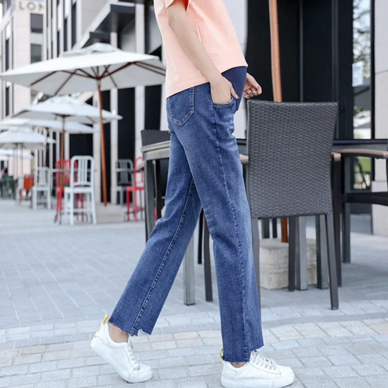| Spring Autumn Pregnant Women Pants Maternity Jeans Ripped Denim Abdominal Adjustable Pregnant Women Pencil Long Trousers L-6XL |