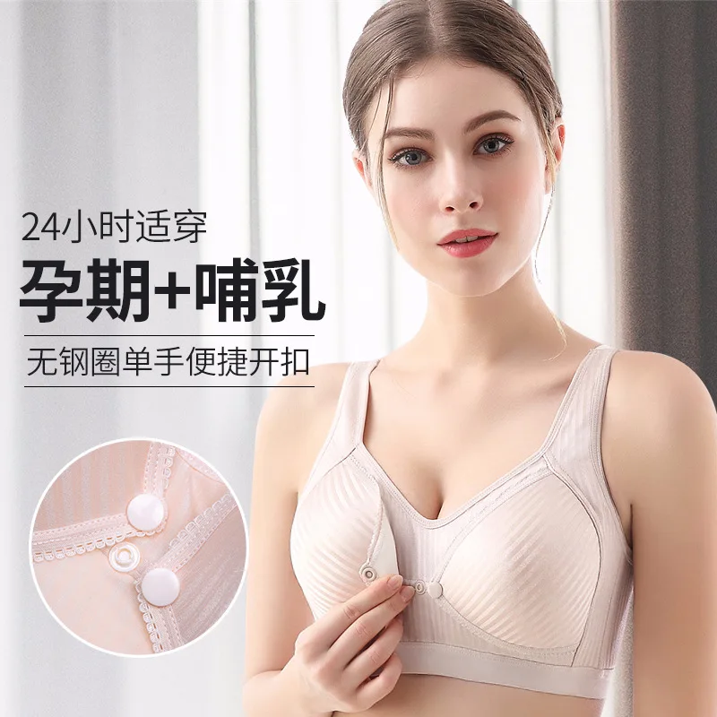 Pregnant women without rims Front buckle large size nursing bra one-piece feeding adjustment gathers seamless bra underwear